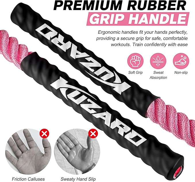 • High Quality Design: Anti-slip handles made from quality polyolefin provide a secure grip and protect your wrists and palms during exercise. Paired with a durable polymer fiber rope, the KUZARO Jump Rope is built for comfort and resilience