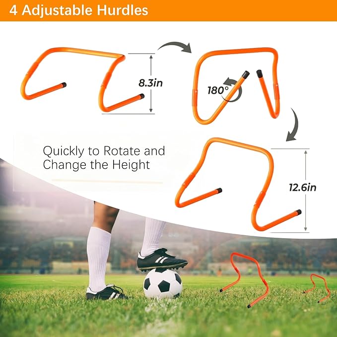 - Suitable for Different Groups of People: Our Agility ladder hurdles for kids create a variety of drills for improving, footwork, balance, and explosiveness. Suitable for coaches, football players, basketball players, soccer players, tennis players, athletes of all sorts and fitness enthusiasts. create a fun obstacle course for kids and adults alike