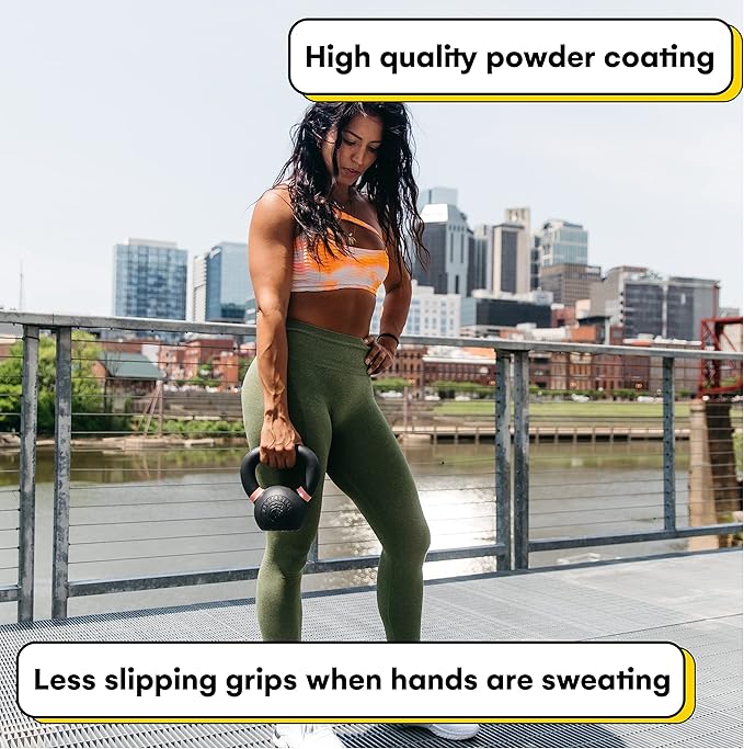 - POWDER COATED WORKOUT WEIGHTS: These cast iron kettlebells are powder coated to prevent rust and corrosion and to avoid slipping during use. The texture gives better grip strength without usage of chalk.