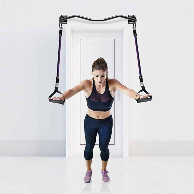 • 🙌 Comfortable and Safe Grip: The bar has a grip diameter of 1 3/10", suitable for most users. You can work out your back, shoulder, chest, arms, triceps, biceps, lats, and abs with ease. The edges of the handles are designed with a circular anti-collision design to protect your hands and walls.