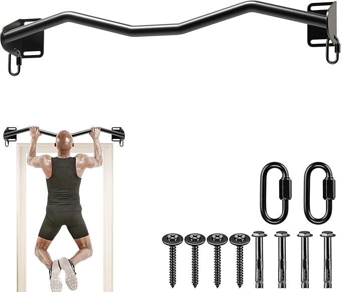 • 🛠️ Easy to Install and Use: The pull up bar comes with all mounting hardware and instructions so that you can install it quickly and easily on door frame. The bar mounting hole spacing of 36", suitable for most doorways.