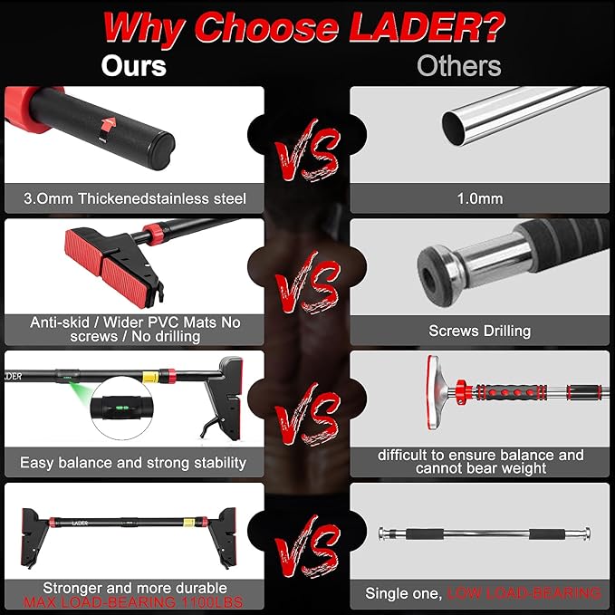 - 【No Screws & No Drilling】The pull up bar is designed with two widening anti-skid devices on both sides.It's very simple to install, just need to twist both sides to get it to the length by useing our Hex Wrench.