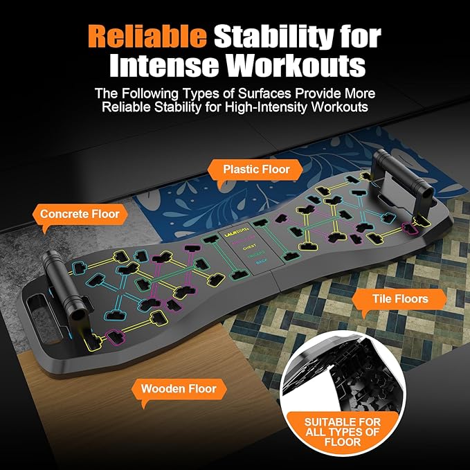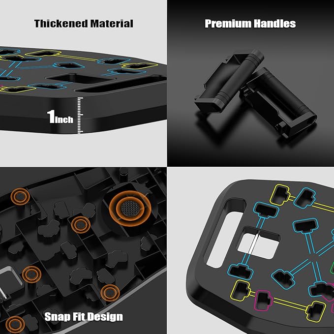 - Premium ABS Material and Design:Crafted from high-quality ABS material, this push up board boasts exceptional durability and strength. The thick and sturdy construction ensures long-lasting performance. Equipped with premium handles and plugs, it provides a secure and stable grip during your workout sessions, minimizing the risk of slipping and ensuring safety.