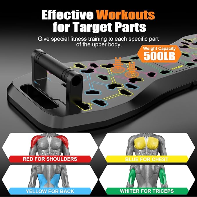 - Versatile Training:This multi-functional home gym equipment allows you to perform symmetrical posture training targeting different body parts as needed. Whether you aim to strengthen your chest, shoulders, triceps, or back, this pushup board provides a comprehensive workout solution to meet your diverse fitness needs.