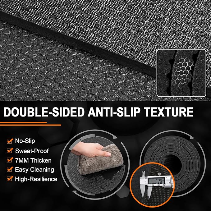 - ✅EXTRA-LARGE HOME GYM MAT COVERS 40 SQUARE FEET: The 8’x5’x7mm large fitness mat instantly transforms any space into a professional gym, giving you and your partners more than enough room to workout on without feeling cramped, and the floor mat is even shoe-friendly, whether you’re doing cardio, yoga, weightlift, dance workout including P90x, MMA, TAM, insanity, T25, Zumba, TRX, kettlebell, jumping rope or need large mats to install underneath a treadmill or weight bench, try this exercise mat.