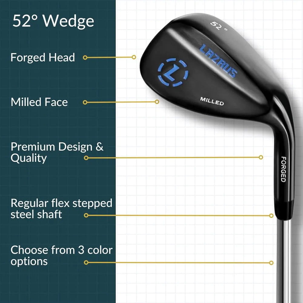 LAZRUS Premium Forged Golf Wedge Set for Men - 52, 56, 60 Degree Wedges + Milled Face for More Spin - Great Golf Gift, RH, Black 52 Degree