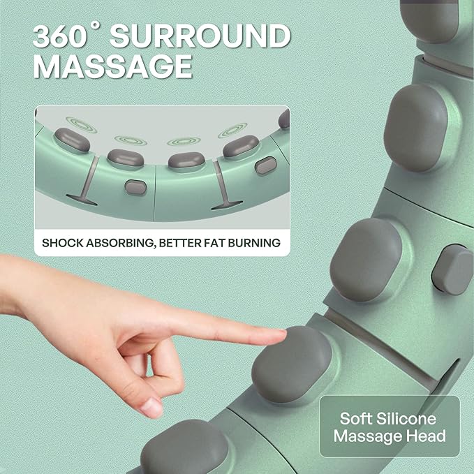 - 【Premium Materials】 The smart weighted exercise hoop is made of hard ABS plastic to prevent equipment aging. The inner massage heads are made of highly elastic soft silicone to protect your skin and provide soothing massage of your abdomen. The upgraded soft silicone massage heads provide 360° abdominal massaging action to tone and tighten your abdomen.