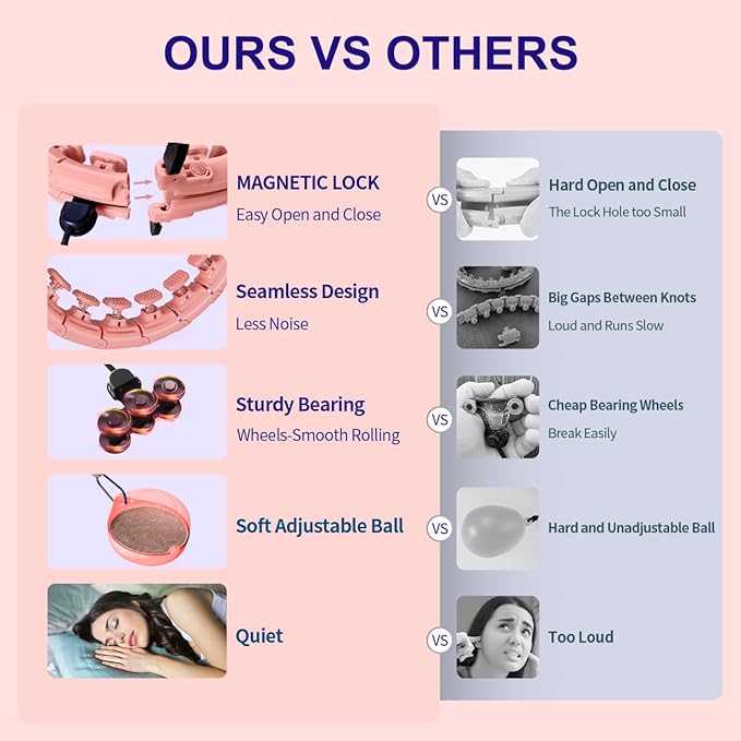 - EXCLUSIVE CUSTOM COLORS, HIGH QUALITY| We have multiple exclusive custom beautiful colors to fit your taste. Our product is the only hoop that has magnetic lock, adjustable weight ball and multiple custom colors. Sturdy, lightweight construction with high-quality ABS plastic.