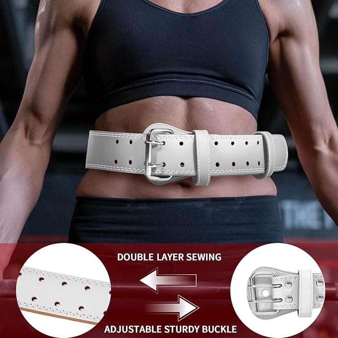 - 【Double Sided Leather - Comfort & Elegant】This men and women weight lifting belt is double sewn from premium leather, suede lining and padding ensure comfort while fitness, steel double-pin buckle makes it hard to loose, stylish and durable!