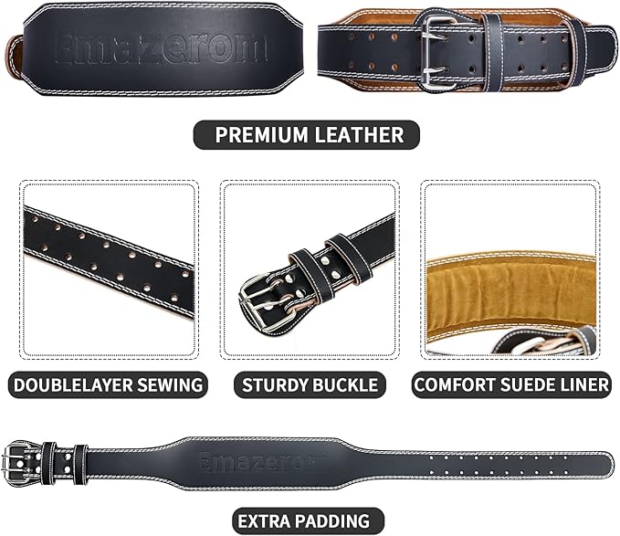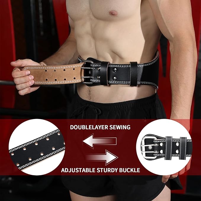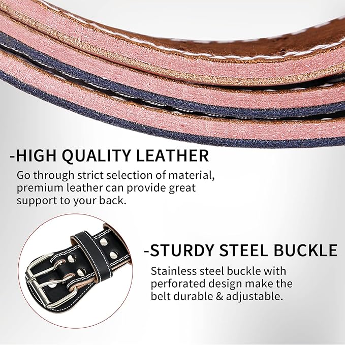 - 【Double Sided Leather - Comfort & Elegant】This men and women weight lifting belt is double sewn from premium leather, suede lining and padding ensure comfort while fitness, steel double-pin buckle makes it hard to loose, stylish and durable!