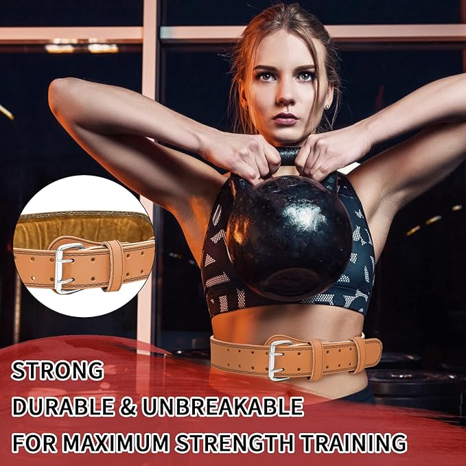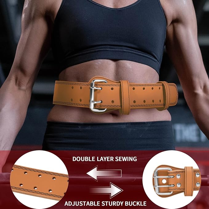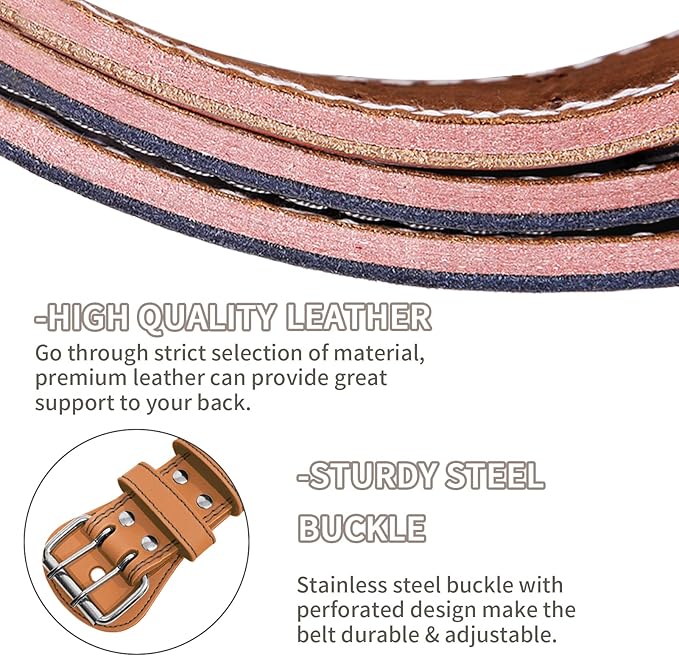 - 【Double Sided Leather - Comfort & Elegant】This men and women weight lifting belt is double sewn from premium leather, suede lining and padding ensure comfort while fitness, steel double-pin buckle makes it hard to loose, stylish and durable!