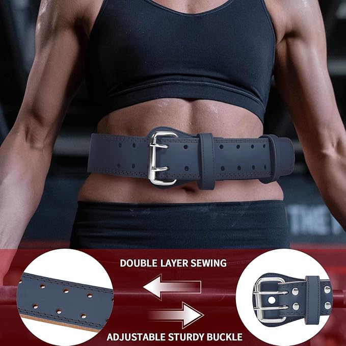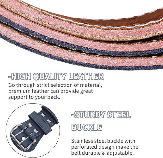 - 【Double Sided Leather - Comfort & Elegant】This men and women weight lifting belt is double sewn from premium leather, suede lining and padding ensure comfort while fitness, steel double-pin buckle makes it hard to loose, stylish and durable!