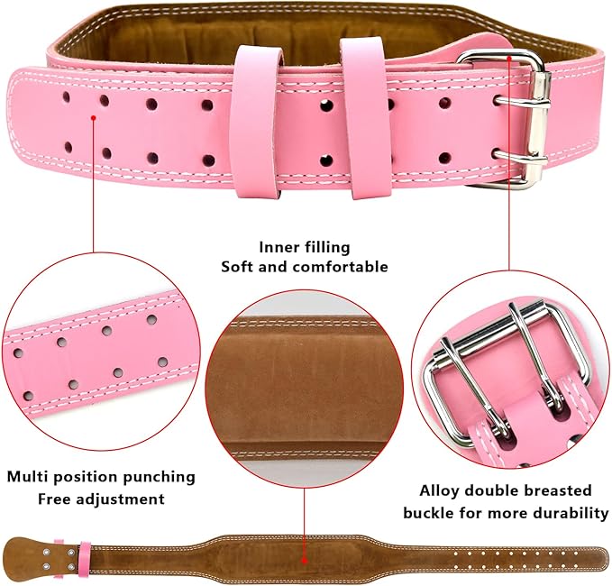 - Perfect Design: Made from leather and the 8 mm thick weightlifting belt that is hard to break and tear. The design of stainless steel buckle Each belt is reinforced with 6 stainless steel rivets and uses fine stitching technology - double-layer sewing; each belt has 10 rows of holes that will be free to adjust the waist circumference and feel comfortable.