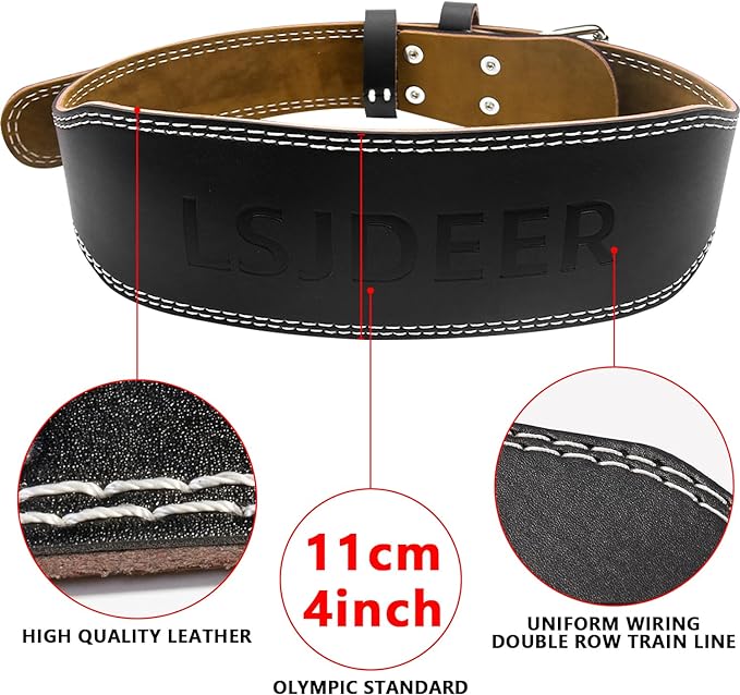 - Perfect Design: Made from leather and the 8 mm thick weightlifting belt that is hard to break and tear. The design of stainless steel buckle Each belt is reinforced with 6 stainless steel rivets and uses fine stitching technology - double-layer sewing; each belt has 10 rows of holes that will be free to adjust the waist circumference and feel comfortable.
