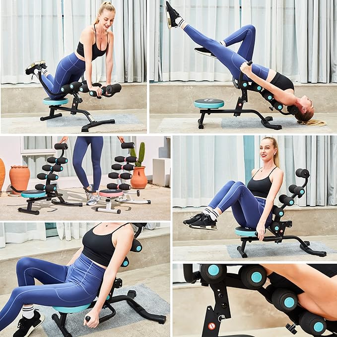 - Unique Design:The fitness machine fits the curve of the human body, cares for your spine and supports your back and neck. The thick round foam can roll while you rock, effectively eliminating the strain on your back and neck.360° Rotate Round PU leather cushion with excellent height from the ground and head support pad with 3-level adjustable heights provide you with comfortable workout experience.