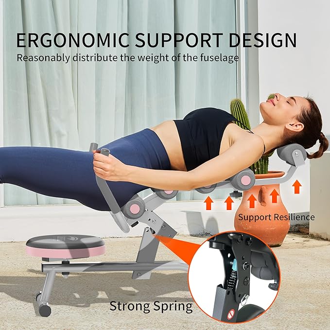 - Unique Design:The fitness machine fits the curve of the human body, cares for your spine and supports your back and neck. The thick round foam can roll while you rock, effectively eliminating the strain on your back and neck.360° Rotate Round PU leather cushion with excellent height from the ground and head support pad with 3-level adjustable heights provide you with comfortable workout experience.