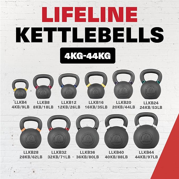 - Premium quality, Lifeline Kettlebells are made with virgin iron ore, not scrap, and formed into a strong, balanced, single-piece casting with a flat wobble-free base. Made with a clean, consistent surface and durable powder-coat finish