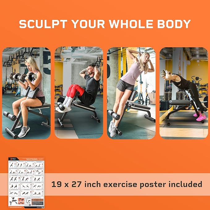 - DO MORE WITH YOUR ROMAN CHAIR EXERCISE EQUIPMENT - Much more versatile than a regular roman chair hyperextension bench, the SculptTrainer lets you switch between over 20 whole-body exercises with ease.