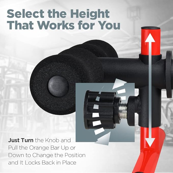 - Adjustable Design: To accommodate different foot sizes, the LoGest Tib Bar calves workout equipment features an adjustable height from 8-12 inches. Just turn the knob and pull the orange bar up or down to change the position and it locks back in place.