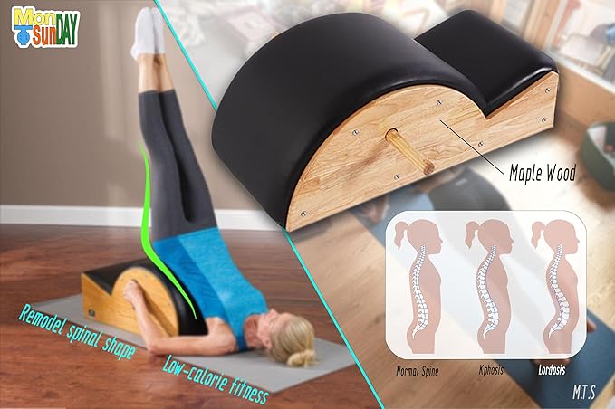 - 🖊️Pilates Spine Corrector,one of the most important pilates equipment, weight 26.5 lbs, 36"x17"x12.6", you can place it at home and enjoy home fitness even in bad weather, and it eliminates the need to go to the Gym. This is especially good for women working out at home.The product is available in Maple Wood and Rubber Wood, there is a difference in price, but both are great to use.
