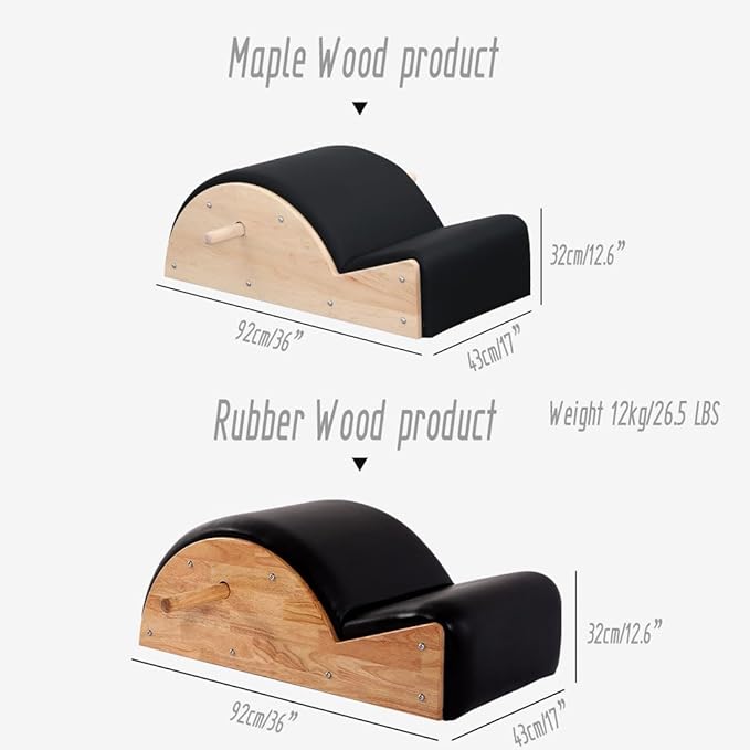 - 🖊️Pilates Spine Corrector,one of the most important pilates equipment, weight 26.5 lbs, 36"x17"x12.6", you can place it at home and enjoy home fitness even in bad weather, and it eliminates the need to go to the Gym. This is especially good for women working out at home.The product is available in Maple Wood and Rubber Wood, there is a difference in price, but both are great to use.