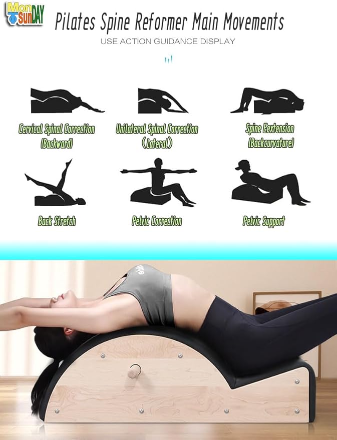 - 🖊️Long hours at work or trauma can deform bones and joints in the body. These changes cause negative effects with age. Invest in your future health by doing bone stretching exercises 15-20 minutes a day on Pilates Spine Corrector.For women's fitness, body shaping is more meaningful than muscle strength training, and perfect body proportions are more attractive. Pilates home fitness for couples is more beautiful and romantic activity.It is also a good choice for athletes recovery.