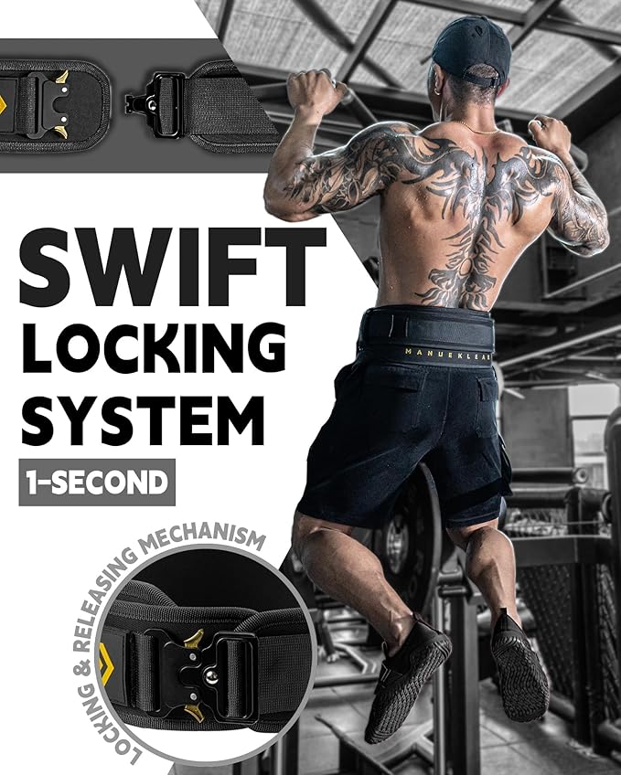 - 🔒 𝐒𝐰𝐢𝐟𝐭 𝐋𝐨𝐜𝐤𝐢𝐧𝐠 𝐒𝐲𝐬𝐭𝐞𝐦: Say goodbye to cumbersome adjustments with the MANUEKLEAR Quick Locking Weighted Belt. Featuring a lightning-fast 1-second locking and releasing mechanism, this belt ensures seamless transitions between exercises. Plus, our secure locking system is engineered for durability, capable of supporting heavier weights with ease.