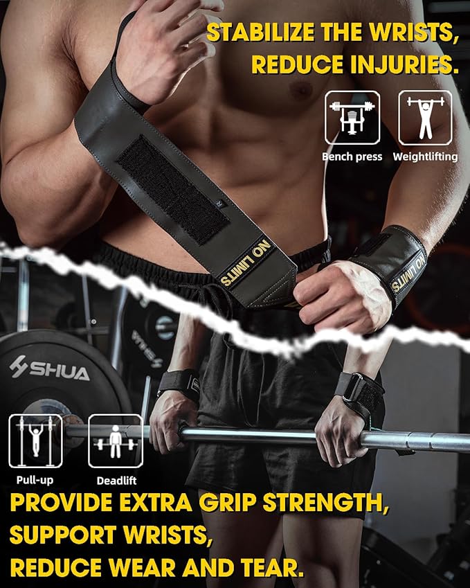 - 👍【Anti-Slip Design & More Safety】 - These lifting straps for weightlifting perfectly fit your palm and wraps around your wrist, with a non-slip design on the palm surface to further increase friction and improve grip, allowing you to better grip the barbell and fitness equipment, and to prevent calluses and slippage, helping you to exercise more safely and effectively, without fear of injury caused by wrong exercise.