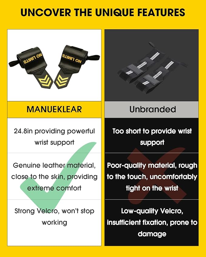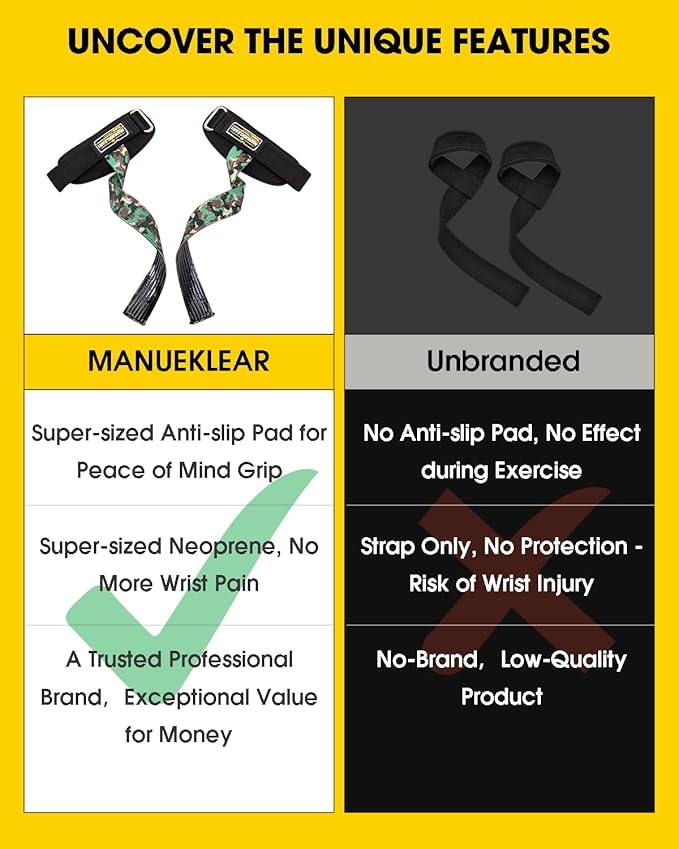 - 👍【Anti-Slip Design & More Safety】 - These lifting straps for weightlifting perfectly fit your palm and wraps around your wrist, with a non-slip design on the palm surface to further increase friction and improve grip, allowing you to better grip the barbell and fitness equipment, and to prevent calluses and slippage, helping you to exercise more safely and effectively, without fear of injury caused by wrong exercise.