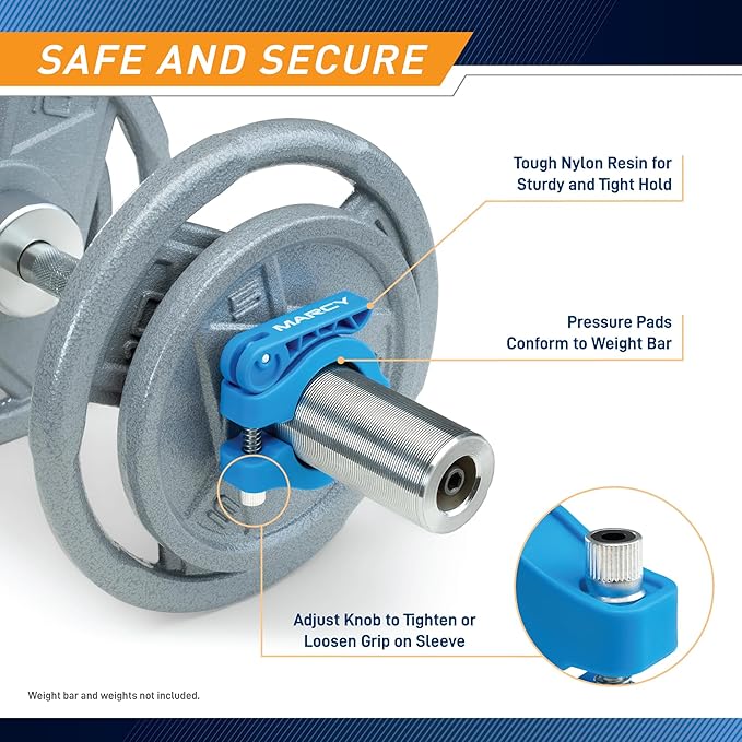 • Easy to Take to any Workout: Don't hesitate to take your Marcy Olympic Lock Collar Clips to the gym or to any place you workout for a safe and secure workout!