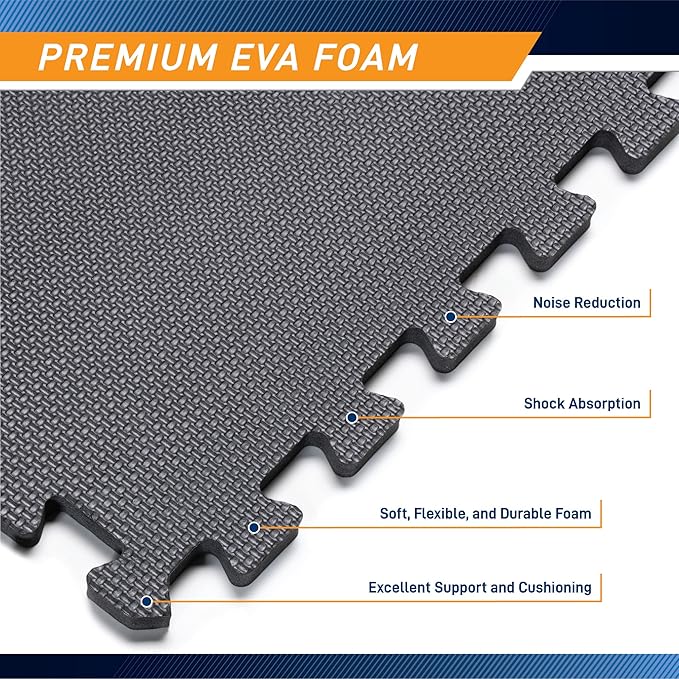 - HIGH-IMPACT – This anti-fatigue foam flooring offers maximum space, comfort, and protection. Its durable non-slip foam padding will protect and provide comfort to any surface, including your athletic equipment.