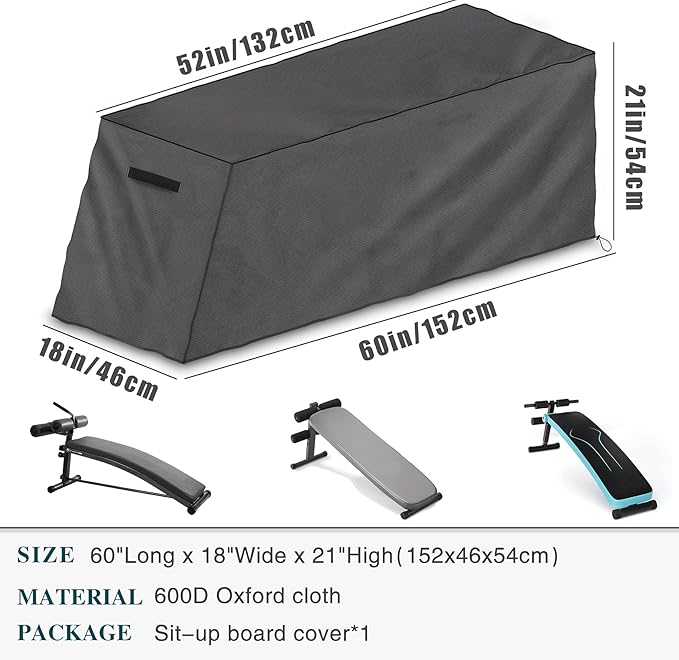 - FEATURES:The front side of the weightlifting chair cover is designed with a handle for easy use. There is a ventilation window on the rear side to prevent moisture from condensing inside the sit-up board cover and keep the interior dry. There is a spring buckle pull rope at the bottom to make it easy to use. The cover fits better with the weightlifting chair