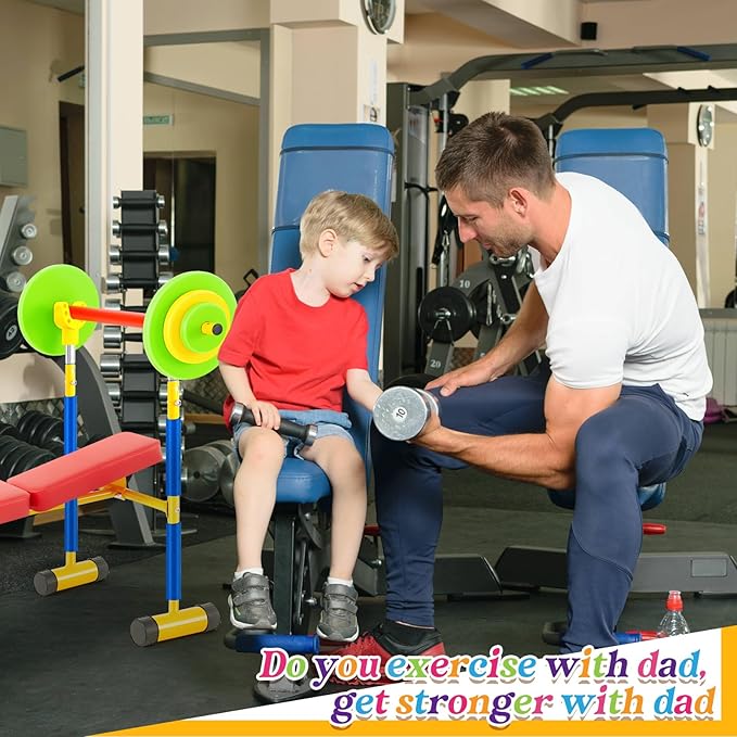 - Practical and Versatile: the baby weight bench set is suitable for diverse kinds of places, including but not limited to bedroom, living room, study room and more, which can enable your children to exercise themselves at home and enhance their physical fitness
