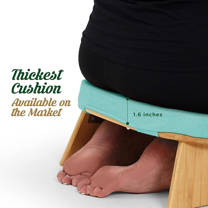 - ALLEVIATES KNEE PRESSURE FROM SITTING CROSS-LEGGED: </b>Sitting on a meditation kneeling bench aligns your ankles with your legs, which puts less twisting force on your knee.