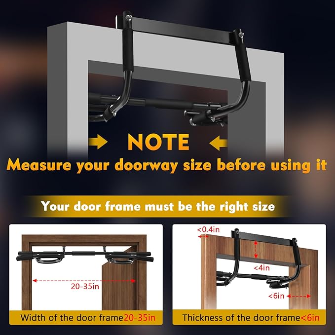 - 【Fits most doors】 : It fits residential doorways 6 inches deep when measured from trim face to trim face. Expandable bar ends fit doorways 20" to 35" wide with molding up to 3.5" wide.So it fits most room doors