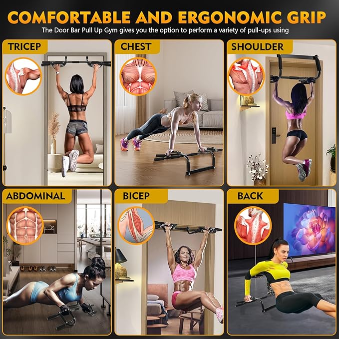 - 【Easy Installation】: The simple doorway pull up bar is designed for convenient installation without the need for any drilling or permanent fixtures. It can be easily mounted on most standard door frames within minutes