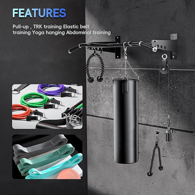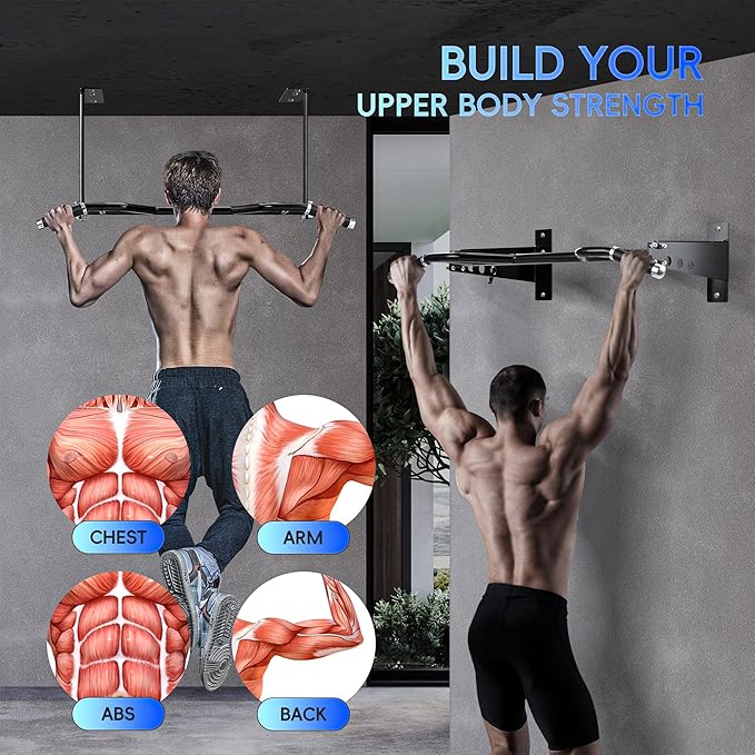 - 💪【Multifunctional Fitness Machine】Take your workouts to the next level with our versatile wall mount pull-up bar. Featuring different gripping positions, it targets multiple muscle groups including your back, shoulders, chest, arms, triceps, biceps, lats, and abs.