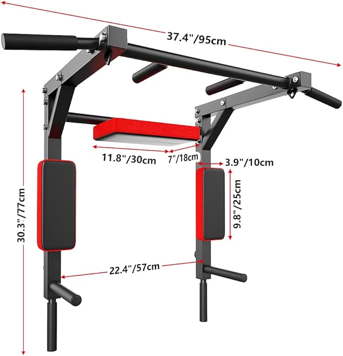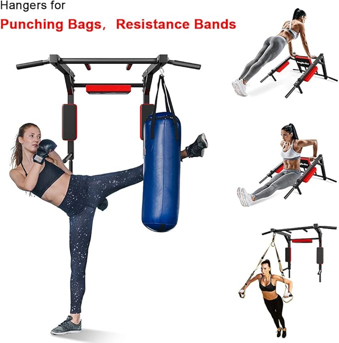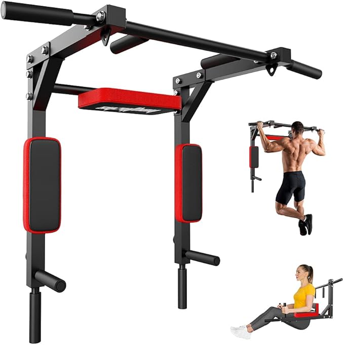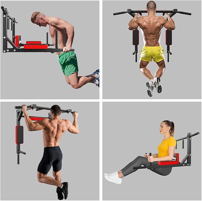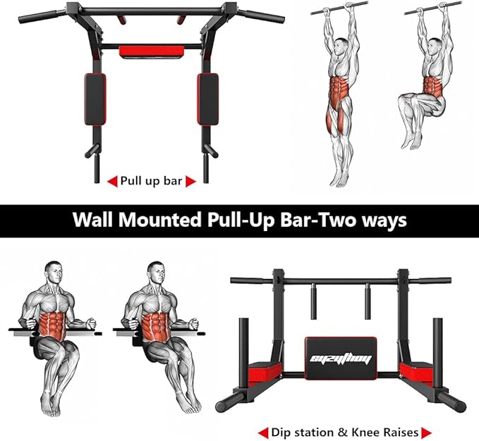 - Multifunctional Fitness Machine: This wall mounted pull-up bar can support many kinds of sport exercise like pull ups,chin ups,dip station,leg raises and boxing. Perfect for exercising your backs,shoulder,chest,arms,triceps,biceps,lats,and the front of your abs and provide comfort