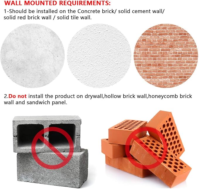 - Wall Mounted Requirements: Concrete brick/solid cement wall/solid red brick wall /solid tile wall are a great surface for mounting this pull up bar wall mounted. Don't install on hollow brick wall/honeycomb brick wall/drywall/sandwich panel