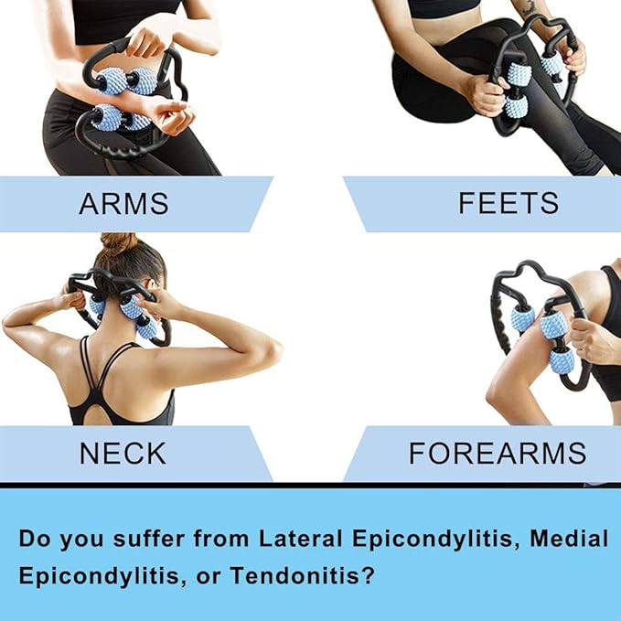 - ❤【EASY TO ROLL】 The muscle roller control the pressure from a light roll to a therapeutic deep tissue massage. It also allows you to pinpoint the placement of the rollers, so you can easily massage areas like the calves, thigh, quads, neck, arms, forearms, tennis elbow or golfer elbow. Stretches muscle and other soft tissues in multiple directions. Breaks down tightness and knots and erodes trigger points, which increase your flexibility and reduce your pain.