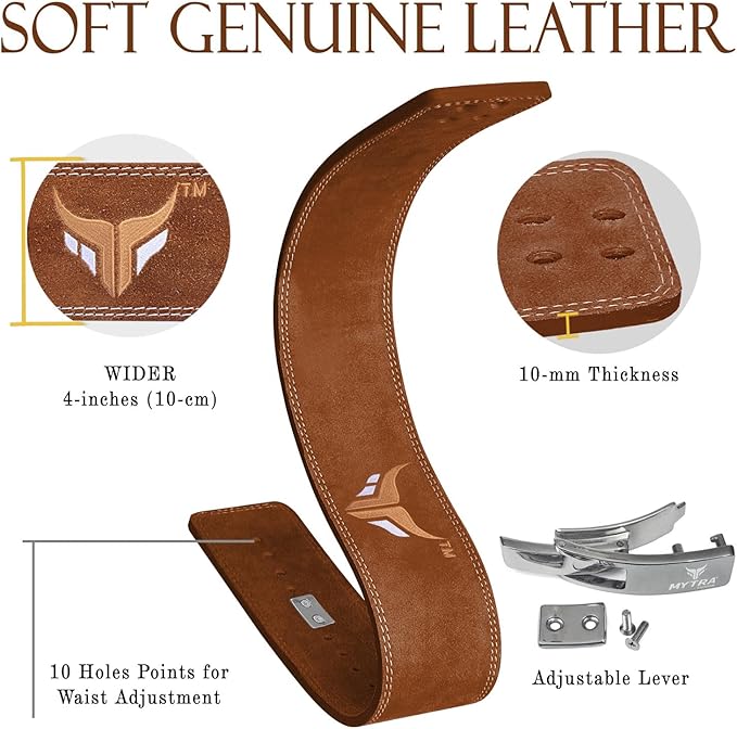 - COMFORTABLE LIFTING BELT: Mytra Fusion leather weight lifting belt offers the best comfort and support for the spine. This weight belt ideal for men, women, fitness, bodybuilding, weightlifting, gym and workout.