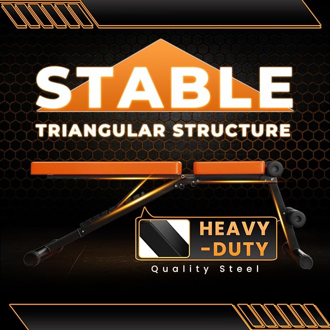 - 【Trianglar Structure Bench Press】Made of triangular structure and heavy-duty commercial steel, our adjustable weight bench for home gym can bear up to 660 pounds. Stable and durable design provides you a safe and stable full body workout experience