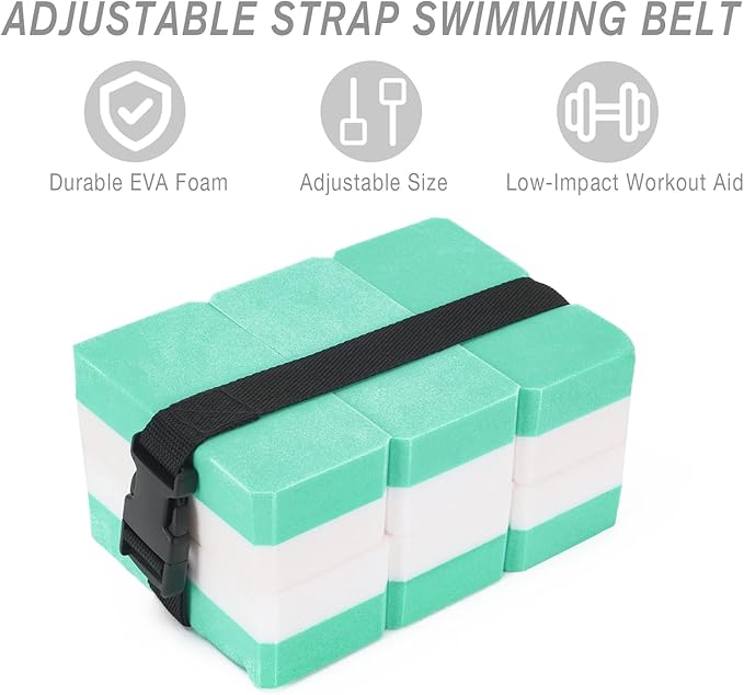 • Aquatic Exercise Equipment: This combo set has all the essential tools you need for aquatic exercise. It includes 2 high-density EVA foam water weights, 1 swimming belt, 1 swimming pull buoy, 1 swimming kickboard.