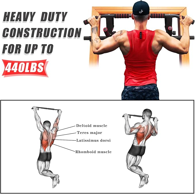 - ✅【Heavy Duty Steel Construction】:This wall mounted pull up bar is made of heavy duty steel,which offers great stability and rigidity,supports up to 440 pounds.
