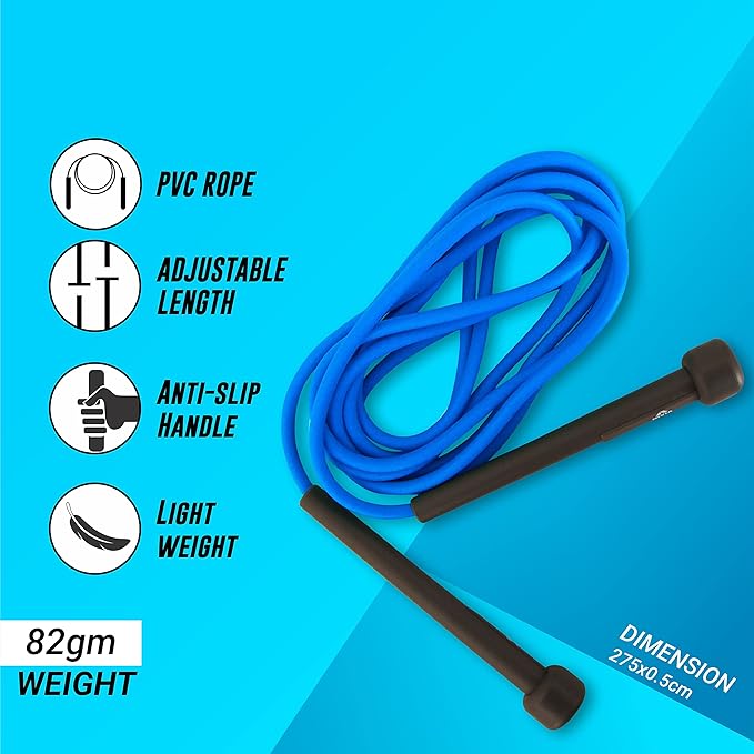 - DURABLE PERFORMANCE: Skipping Rope is made from durable PVC material that won't twist or break during your workout. The comfortable grips are designed so that the product has a long-lasting life. Jump rope is designed for effective workouts for all women, men, and kids.
