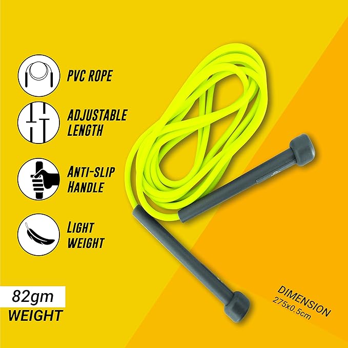 - DURABLE PERFORMANCE: Skipping Rope is made from durable PVC material that won't twist or break during your workout. The comfortable grips are designed so that the product has a long-lasting life. Jump rope is designed for effective workouts for all women, men, and kids.
