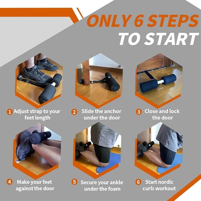 - Easy To Use: Hamstring curl strap is easy to use, you can adjust the length of the nylon straps according to the size and comfort of your feet. The foam door anchors are then secured to the bottom of the door frame without damaging the door. You can also use a binding fixation method to bind the strap to the board at the end of the bed and perform sit-ups on the bed