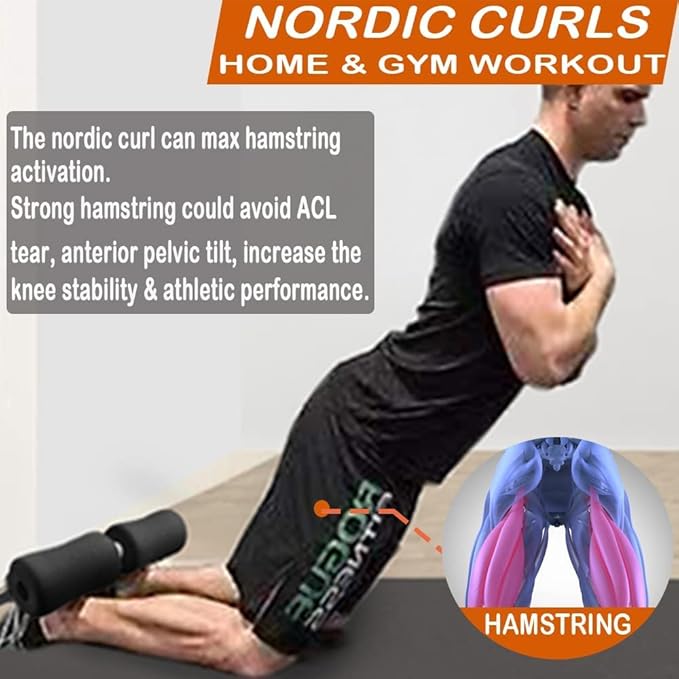 - Improve Athletic Ability: The Nordic style hamstring curl strap effectively target the muscles of the abdomen, legs, calves, buttocks and back for strength training, strengthening your core, thereby improving your athletic performance and reducing all kinds of pain caused by lack of muscle strength. Suitable for most people, whether you are a fitness beginner or professional coach, adult or adolescent