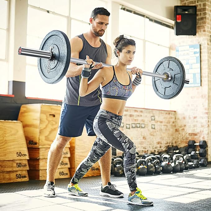 - Size of weightlifting bar: Total length 87in/7ft, sleeve length 16in, grip diameter 28mm, sleeve diameter 2in, the grip part is designed with 1.2mm diamond knurling to increase friction and effective anti-skid. Improve safety during exercise.