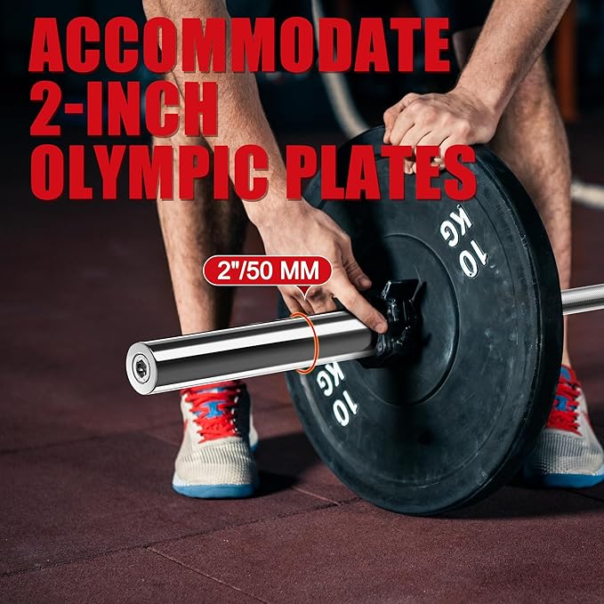 - [SPECIFICATION]The length of Elevens Olympic barbell is 7ft/86.6in; the length of the sleeve is 16in, the diameter is 50mm, suitable for 2in diameter Olympic weights; the diameter of the grip part is 28mm, with 1.2mm scale medium knurling, can be well gripped, but will not tear your hand into pieces!